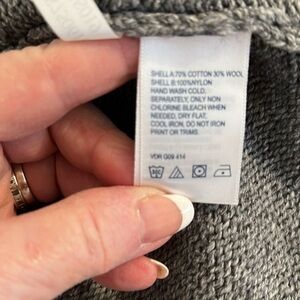 Nautical Size S Crew Neck Zip Front Gray Knit Sweater W/Yellow Puffer Panels