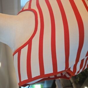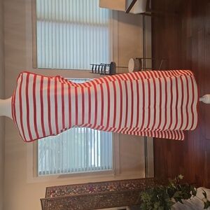 Nautical Striped Stretch A Line Midi Dress Red White Womens Size Large