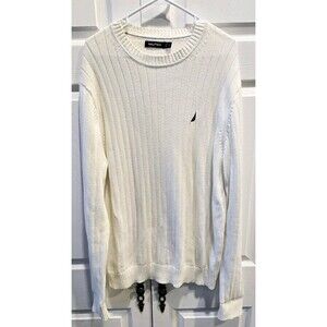 Nautical Sweater Adult Large White Marshmallow Ribbed Outdoor Sailing Golf Mens
