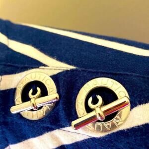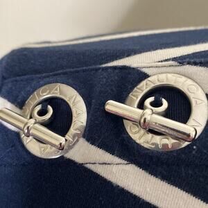 Nautica Womens Striped T-Shirt with Shoulder Bar Toggle (Navy/White, Small