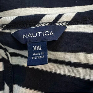 Nautical XXL 2X Shirt Top Navy Blue Stripes Cap Short Sleeve Round Neck Knit Casual