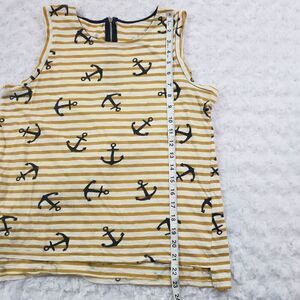 Nautical sleeveless yellow striped tank with blue anchors and zippered back. Hand sewn. The side stitching is offset by approximately 3" on the sides, please see photos. Adorable summer boating top!