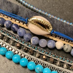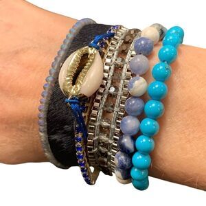 This Boho Cuff Bracelet delivers the perfect beachy blue mix of textures, colors, and unique materials.