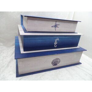 Nautical-Themed Nesting Storage Boxes Set Of 3 Starfish Seahorse Shell Decor