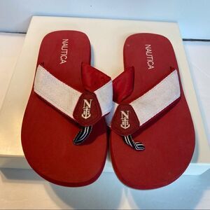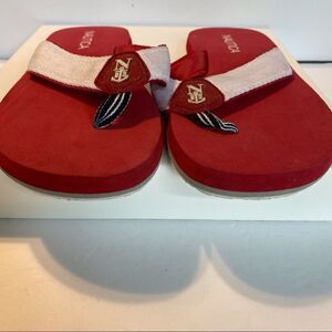 Nautical White/Red Thong Sandals, Size 8