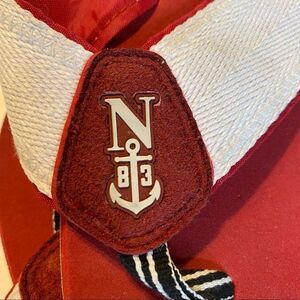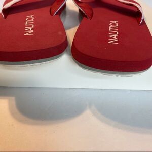 Nautical White/Red Thong Sandals, Size 8. Canvas white front with red accent. Excellent used condition.