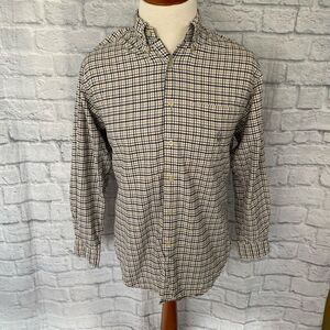 Nautica men M 100% cotton button down long sleeve plaid shirt