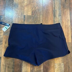 These navy blue shorts are new with tags. The waist measures 19 inches across and they have an 11 inch rise. The LCM of 3 inches and they have side pockets.