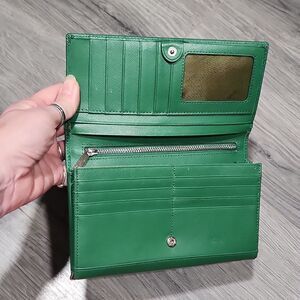 Nava Kelly Green Saffino XL Snap Wallet, tons of storage and pockets for everything you need. No flaws found. Fabulous color and quality.