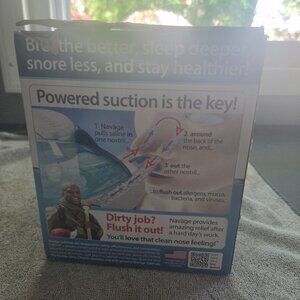 Navage Nasal Care Saline irrigation is a drug free nasal irrigation system for sinus relief. It is all natural safe and easy to use. It includes 20 saltPod capsules. It uses powered suction. Get better sleep and snore less.