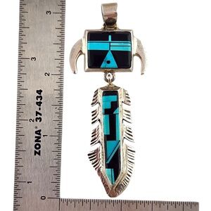 Navajo AY Sterling Silver Inlay Turquoise Pendant #20085