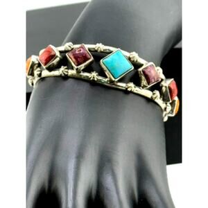 Navajo Albert Yazzie Turquoise Multi Color Agates Bracelet