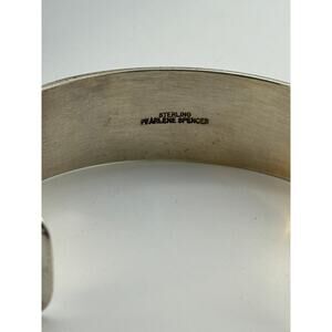 A beautiful bracelet measuring approx. 7.75 inches and. The cuff is 0.8 inches wide. The turquoise inlays are gorgeous inset into the sterling. Weighs 26.7g. Stamped with "Sterling Pearlene Spencer, a Navajo silversmith. This piece is in excellent condition. A beautiful example to add to your collection.