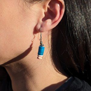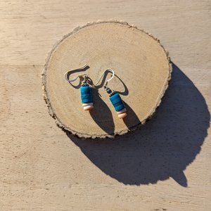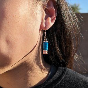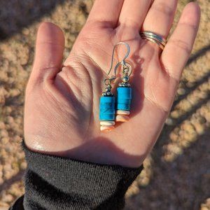 Navajo Block Turquoise and Melon Shells Dangling Earrings NA Handmade Jewelry