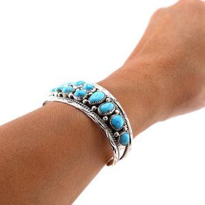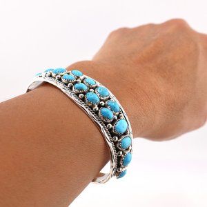 Navajo Bracelet Cluster Turquoise Jewelry Sterling Silver NA Women's Sz 6.25 **