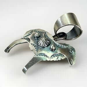 Navajo CHIMNEY BUTTE Sterling Silver Sheep Pendant Hand Stamped 925 Signed