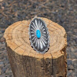 Navajo Concho Ring Kingman Turquoise Sterling Silver Native Am Jewelry sz 7.25US