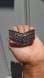 Epic, huge triple layered cuff of solid 925 sterling silver 50 grams in a chevron style. Stamped "MALONEY STERLING." Handcrafted by Navajo (Diné) jewelry designer Freddie Maloney, known for his distinctive stampwork and hand-tooled designs. Maloney is a recognized Native American artist specializing in silver jewelry, often incorporating traditional motifs and techniques in his pieces, as seen on this epic beauty. NO flex at about 6.5 inches...would keep, but doesn't fit. Natural, beautiful patina included. May need a cleaning depending on your preferences. Tested with a neodymium magnet and JSP acid, guaranteed sterling.