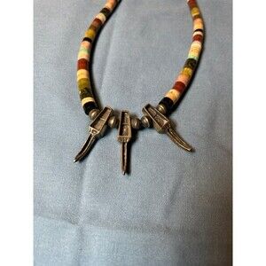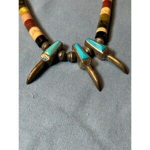 Navajo Eagle Claw Pipestone Turquoise Bench Bead Necklace 19” Vintage