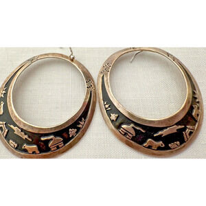Navajo Earrings Singer 925 Silver Dangle Pictograph Native American Signed