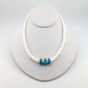 Navajo Graduated White Shell with Kingman Turquoise Beaded Necklace NA Jewelry *