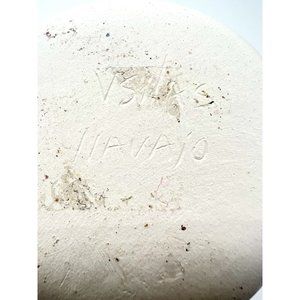 This beautiful colorful ceramic vase is a true work of art, handcrafted by Navajo artisan V. Silas. The intricate etchings on the surface showcase the rich cultural heritage of Native American tribes in the United States. The vase is signed by the artist, adding a personal touch to this unique piece. In good vintage condition. No cracks. As expected with handmade products, there may be small surface or glaze unevenness.