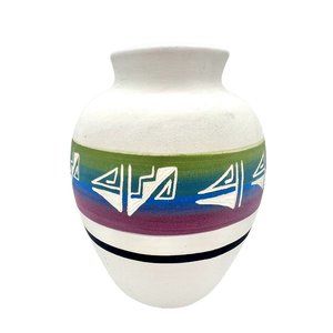 Navajo Hand Etched Pottery Vase Colorful Native American Signed Southwest 5.5"