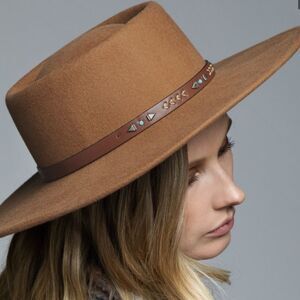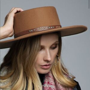 GORGEOUS 100% Wool Navajo Western Inspired Light Brown / Tan Leather Trim Boater Hat