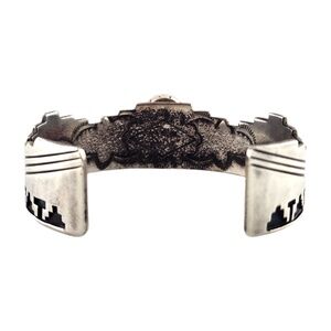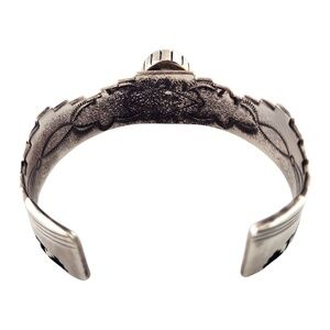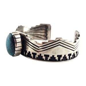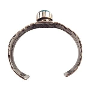 This beautiful cuff bracelet was meticulously crafted from sterling silver with beautiful detailing and features a stunning turquoise stone!