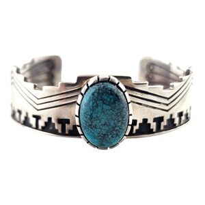 Navajo Joe N. McCabe Sterling Silver Turquoise Cuff Bracelet #18673