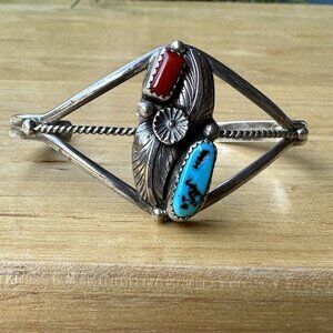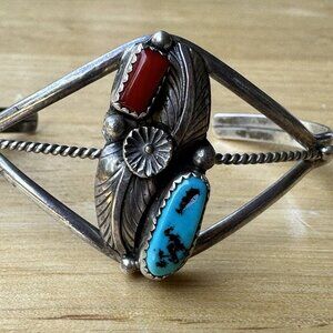 Navajo Johnny Pitchlynn Cuff Bracelet Size 6.25 Turquoise Coral Sterling 12.8g