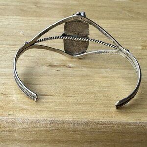 This exquisite size 6.25 open back cuff bracelet showcases a beautiful flower leaf design, crafted from high-quality stamped purity hallmarked 925 sterling silver and adorned with natural blue turquoise and red coral gemstones set in serrated bezels. The vintage piece is handmade by the Navajo Native American artisan JP Johnny Pitchlynn, with a bezel setting style that enhances the overall beauty of the bracelet. Has a flower, leaves, raindrops and rope twist design elements. The bracelet weighs 12.8 grams precious metal and stones and is suitable for women, with a stunning oval-shaped turquoise stone as the main attraction. This Johnny Pitchlynn vintage Navajo handmade bracelet size 6.25 with the open back allows for some degree of adjusting. It is in good pre owned condition with remnant artisan tooling and use wear, the stone cabs are in excellent condition with nice polish, some removable tarnish. Please review the pictures for more details and size information, thank you.