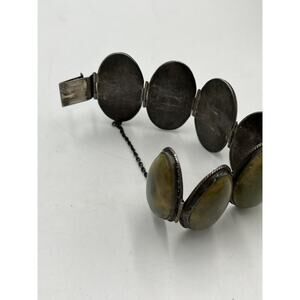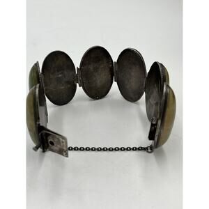 Navajo Mexico Sterling Silver Green Cabochon Domed Safety Chain Bracelet 125 gm