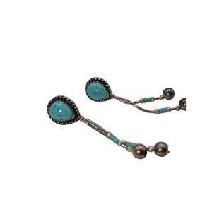 Navajo Native American Indian Sterling Silver Turquoise Dangle Pierced Earrings