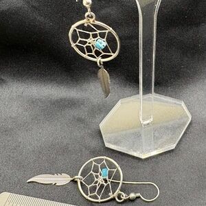 Vintage navajo sterling silver dreamcatcher earrings. Purchased in New Mexico on the Santa Fe Plaza. 2 1/2” drop dangle Will compliment any outfit. Boho to Southwestern vibe.