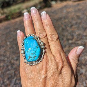 Navajo Native American Ring Women's Turquoise Sterling Silver NA Jewelry