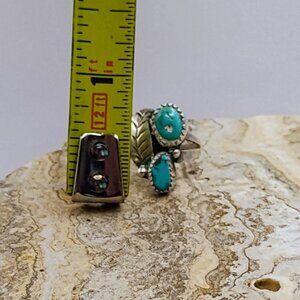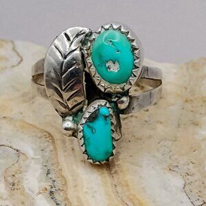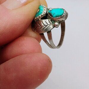 Navajo Old Pawn Turquoise Sterling Silver Ring Size 6.5 Feather Design