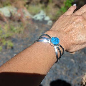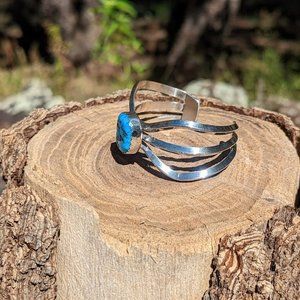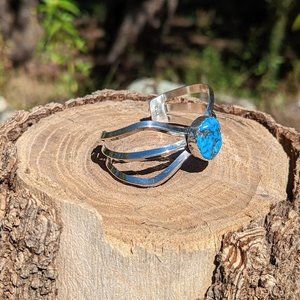 Navajo Oval Shaped Kingman Turquoise Sterling Silver Cuff Bracelet Size 6