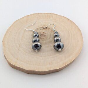 Navajo Pearls Graduated Sterling Silver Dangle Earrings Saucer Beaded Jewelry **