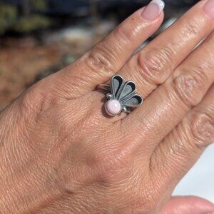 Navajo Pink Conch Shell Ring w/ Fan Style Native American Sterling Silver Sz 8 *
