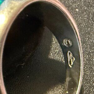 Navajo Rick Tolino Sterling Silver Fire Opal Onyx Band Ring Size 5
