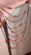 Beautiful shinny liquid silver beads alternating with beads of red coral on this extravagant statement Necklace. Ten gorgeous strands of tiny sterling silver beads with cone ends with the rising sun hallmark and a hook clasp. Beads of real red coral in a deep burnt orange color.