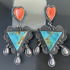 Beautiful large sterling silver and turquoise and spiny oyster earrings