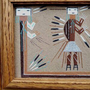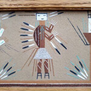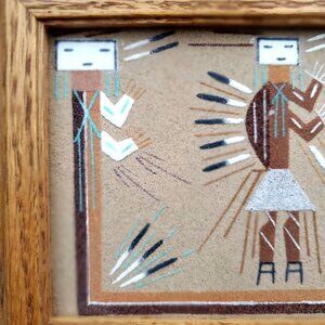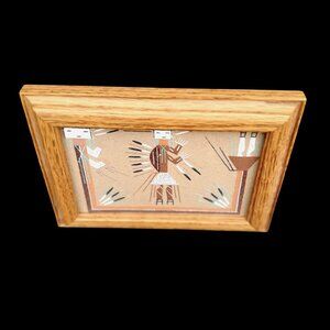 Navajo Sand Art "Rainbow Yei" By Lester Johnson In Oak Frame 7.5"