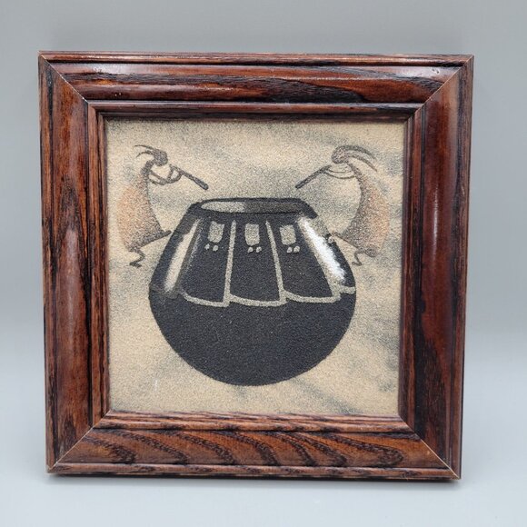Navajo Sandpainting Wall Art In Wooden Frame Signed 8 x 8
