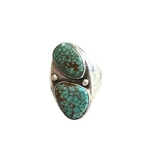 Navajo Silver Nevada Blue Turquoise Ring. Handmade in the 1960’s by a Navajo Silversmith