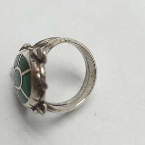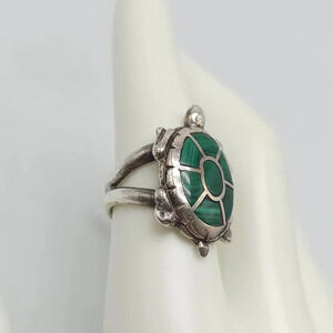 Navajo Silver Tortoise Ring With Green Malachite Stone For Women Size 7