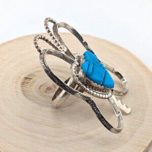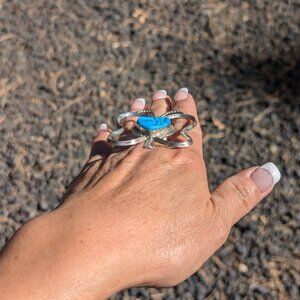 Navajo Silver and Turquoise ring Authentic Native American Jewelry sz 9 Adj ***