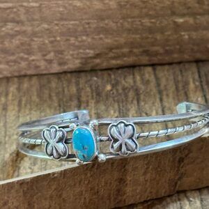 Navajo Sterling Cuff & Kingman Turquoise Floral Cuff Bracelet, Gift Box