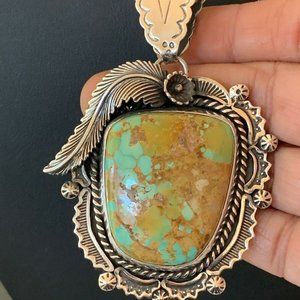 Stunning Navajo Sterling Silver Royston Turquoise Necklace Pendant Length 20 4126